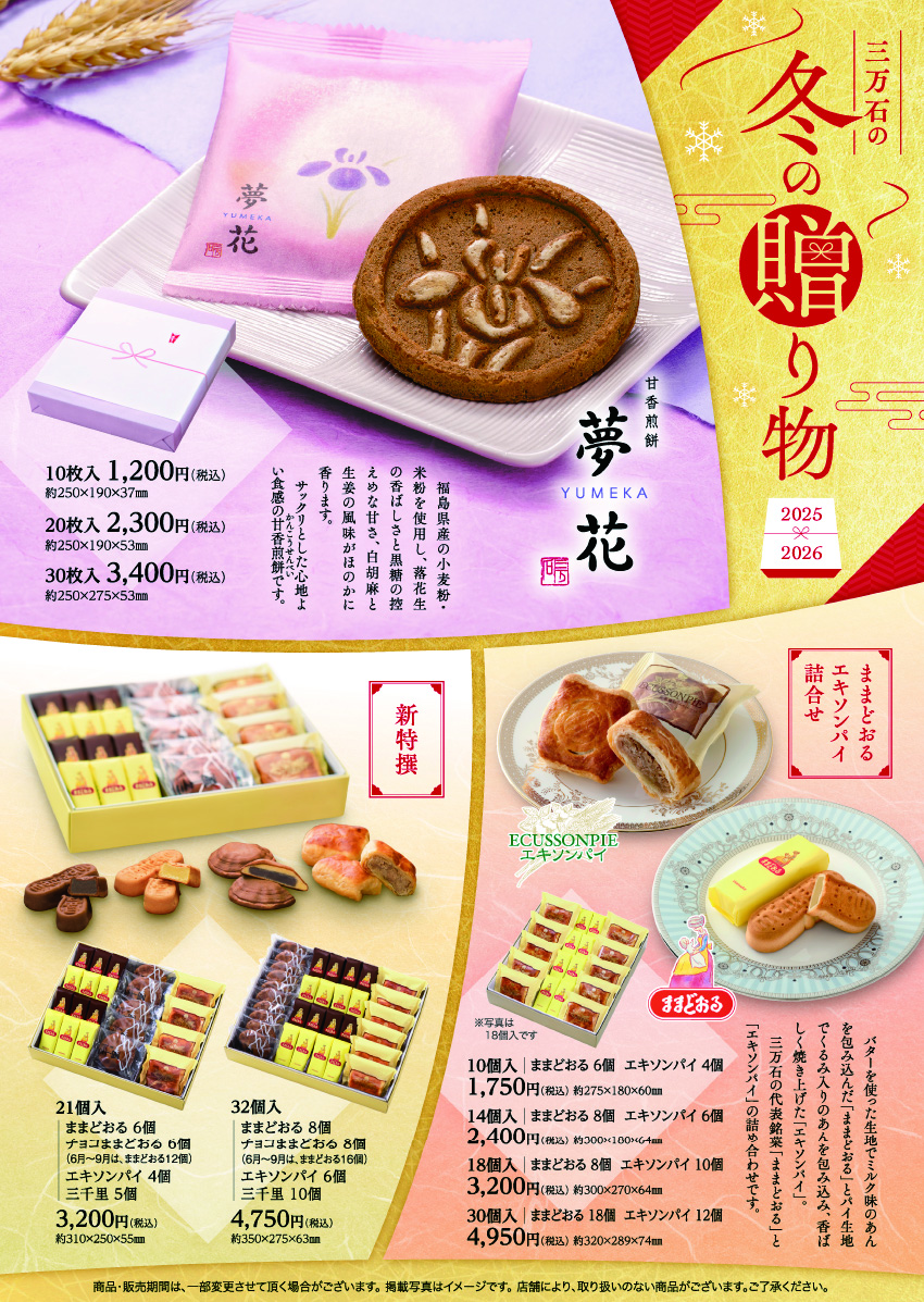 三万石では、季節の贈り物にぴったりな「お歳暮・新春商品」を期間限定でご用意しております。