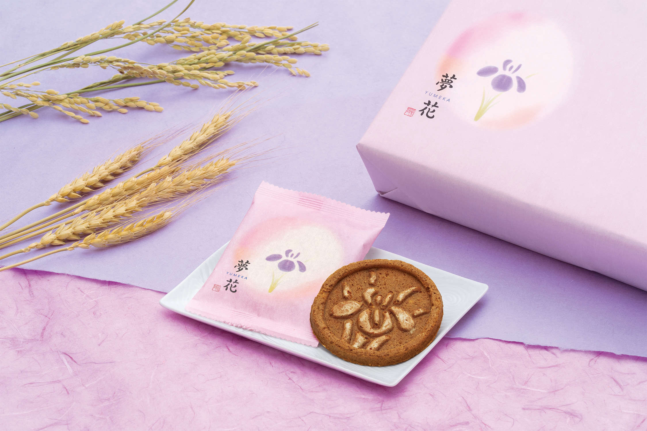 「夢花」は、福島県産の小麦粉と米粉を使用した甘香煎餅です。落花生の香ばしさに黒糖のやさしい甘さを重ね、白胡麻と生姜がほのかに香る、サックリとした心地よい食感に仕上げました。