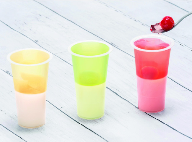 果実の入った透明感あふれるゼリーとなめらかなくちどけの果実ムースの2層で、ひとつでふたつの味わいが楽しめるゼリーです。